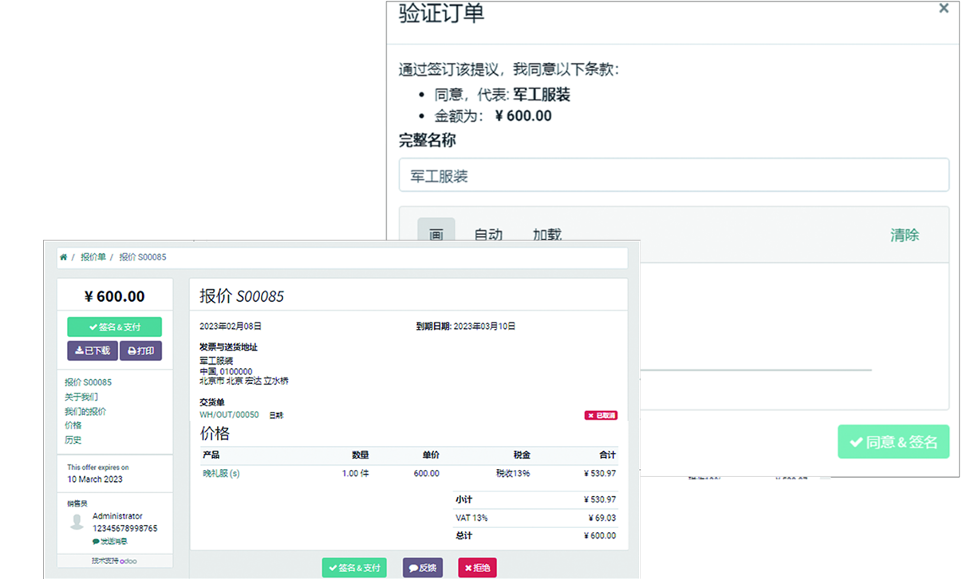 销售模块为用户提供电子合同、电子盖章、电子签名功能,销售单可直接关联交货单和财务数据,并可直接下发