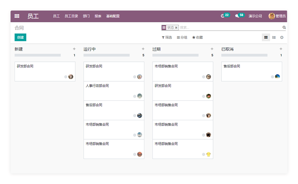合同 出勤 工时 工资条 休假 组织架构