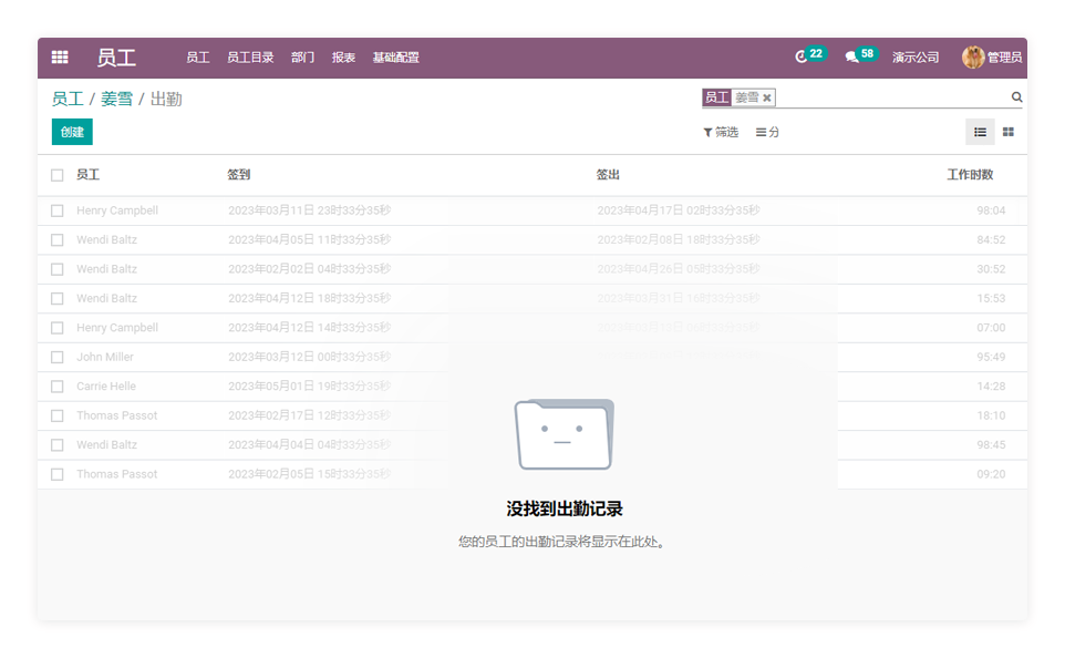 内置的时间管理模块,有效对 来自各个办公地点的员工出勤进行统计,使用开放式考勤和时间跟踪系统,可视化的出勤管理。