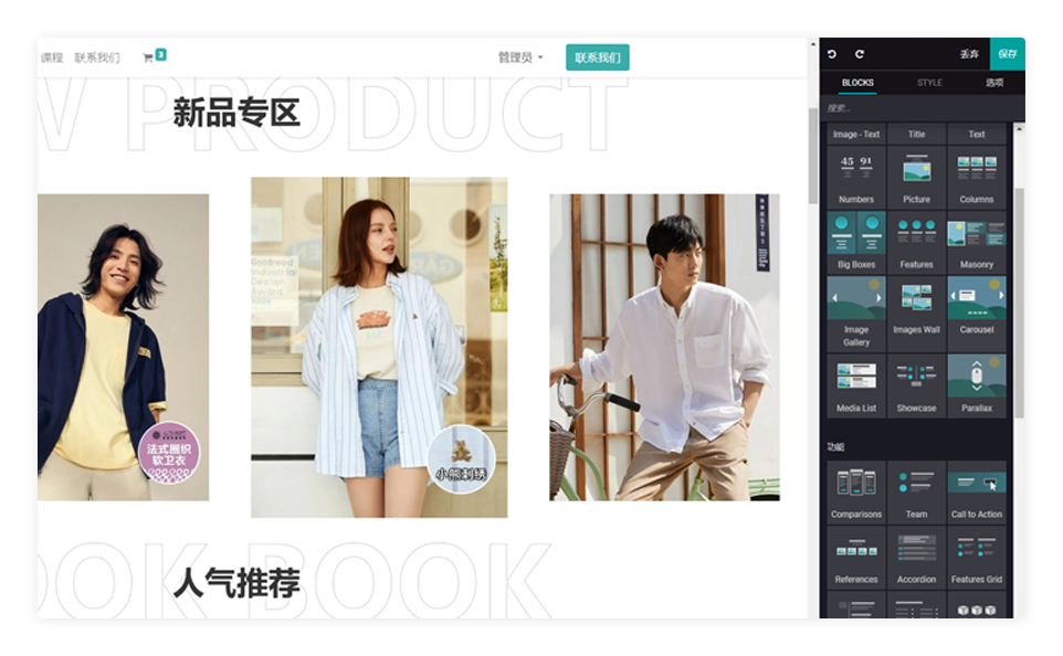内联编辑所有内容,可以给您一种其他工具从未有过的控制感。 广告位、展示区、时间轴等多种模块组合使用。