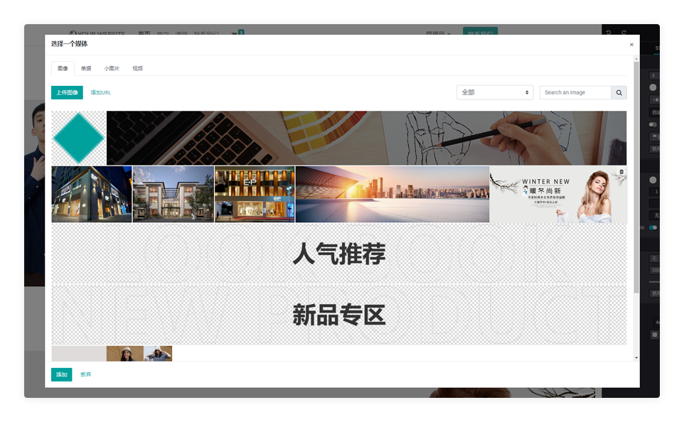 模板类型丰富提供了文本、图片、音频等多种元素,使用拖拽式编辑器就可以直接进行网站搭建