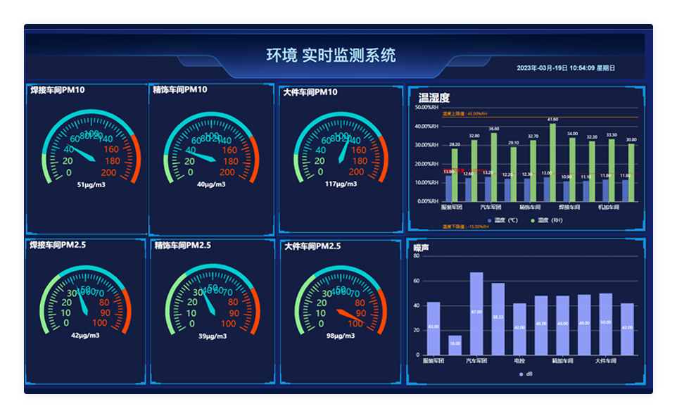 通过对各车间进行全方面的数据检测、实时掌握车间状态是否处于安全指数之内。 做到以人为本、安全生产。