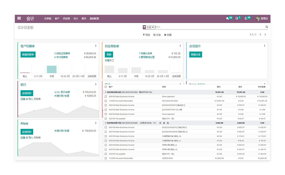 通过统计面板直接访问关键信息。按产品、客户、销售人员等定义并分析发票。