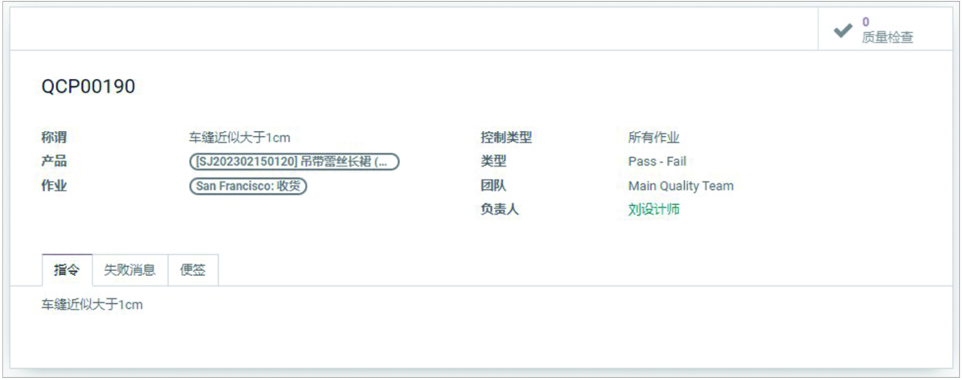 所有的质检记录都显示在质量检查,随时跟踪每个环节的质检情况。